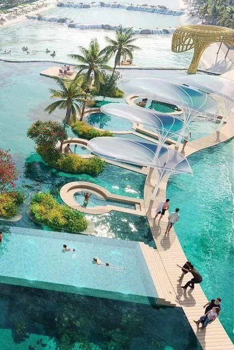 Residents will be able to enjoy resort-style amenities, including a water park, fruit market, iguana park, jungle river, hot spring spa, zipline, mini-golf island, lagoon, aqua dome, water platforms and yoga floating decks, tortoise garden, parrot park, fitness parks, hammocks over water, wedding venue, private boat parties, kayaking and paddleboarding, and much more.